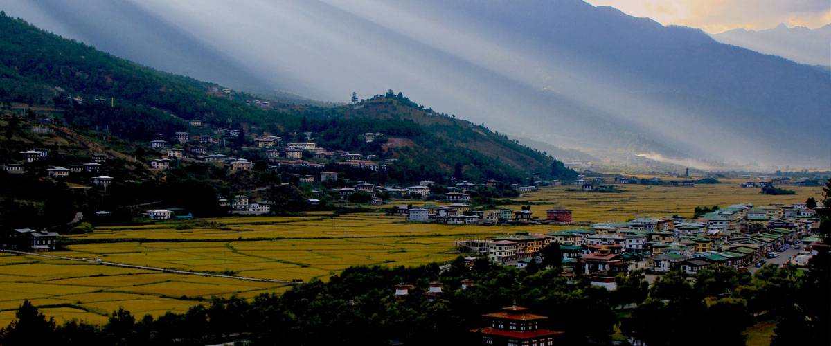 The kingdom of Bhutan lies deep in the eastern Himalayas. It is surrounded by the Tibet Autonomous Region (TAR) of China to the north, and the Indian territories of Assam and West Bengal to the south, Arunachal Pradesh to the east and Sikkim to the west. The tiny landlocked kingdom has a total area of about 47,000 square kilometers and spreads between meridians 89°E and 93°E, and latitudes 27°N and 29°N. Bhutan features three major geographic regions, namely, the high Himalayas of the north, the hills and valleys of the interior, and the foothills and plains of the south. While the towering Himalayan mountains of Bhutan dominate the north of the country, where peaks can easily reach 7,000 metres (22,966 ft) above the sea level, in the south, the Duar Plain drops sharply away from the Himalayas into the large tracts of semi-tropical forest, grasslands and bamboo jungle. Within the mainland of Bhutan, the valleys of different heights and topography makes the country an ideal place for both native people and tourists. The valleys of Bhutan are traversed by the country’s four major river systems and their tributaries which ultimately drain to the Brahmaputra River in India. The valleys are linked by a series of passes (called “La” in Dzongkha, the national language of Bhutan). Between the Haa valley and Paro Valley is the Chele La (3,780 metres (12,402 ft)). The Chele La is the highest pass crossed by a Bhutanese highway. The Lateral Road from Thimphu to Punakha crosses the Dochu La (3,116 metres (10,223 ft)), which features 108 chortens built to commemorate the expulsion of Assamese guerrillas. East of Wangdue Phodrang is the Pele La (3,390 metres (11,122 ft)). Continuing to the east along the main highway, other major passes include the Yotang La, Thrumshing La and Kori La (2,298 metres (7,539 ft).